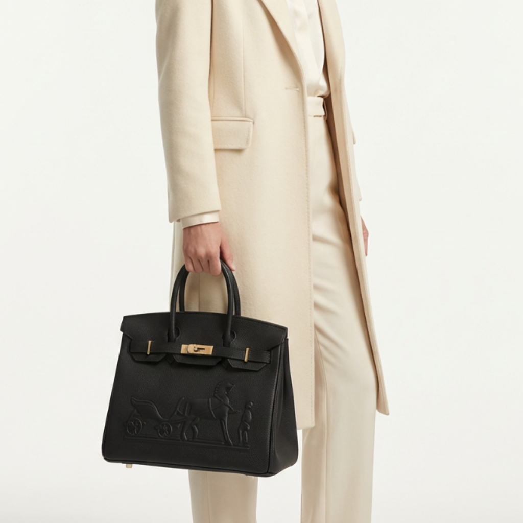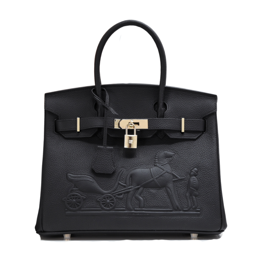 Hermes Birkin 30CM Black Horse Draw Carriage Embossed