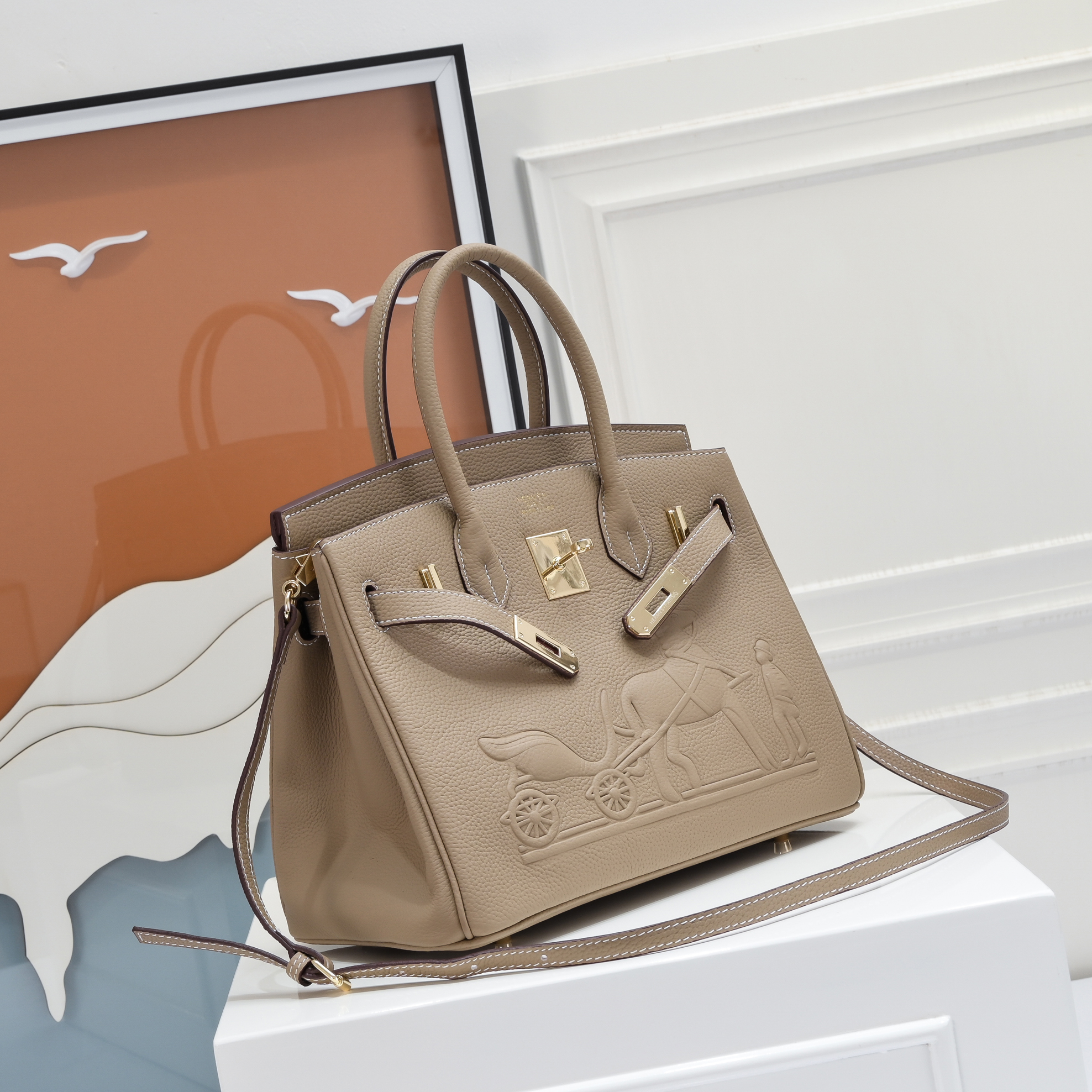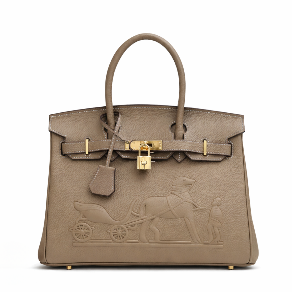Hermes Birkin 30CM Taupe Horse Draw Carriage Embossed