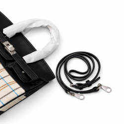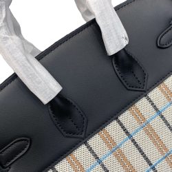 This Birkin Light 30 is in multicolor toile and black swift leather with palladium hardware and has tonal stitching, two straps with front toggle closure, clochette with lock and key and double rolled handles.