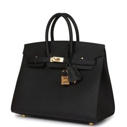 Hermes Birkin Sellier 25 Black Epsom Gold Hardware
