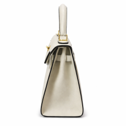 This Kelly, in the Sellier style, is in Craie epsom leather with gold hardware and has tonal stitching, two straps with front toggle closure, clochette with lock and two keys, single rolled handle and removable shoulder strap.