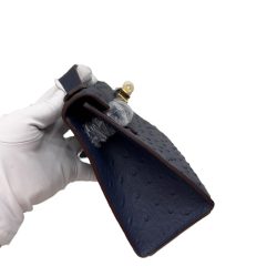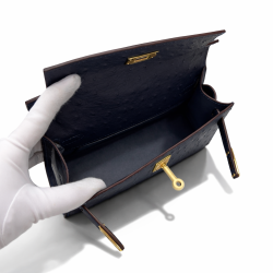 Hermès Kelly Pochette 22 Bleu Iris Ostrich Gold Hardware