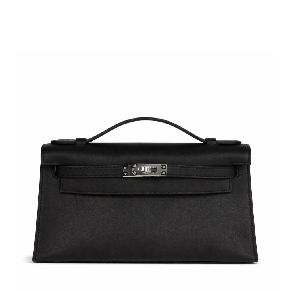 Hermes Kelly Pochette Black Swift Palladium Hardware