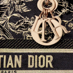 The Lady D-Lite bag combines classic elegance with House modernity. The black multicolor Dior Jardin d’Hiver embroidered cotton with velvet and metallic thread style offers a poetic and exotic interpretation of Mr. Dior’s wall tapestries. The front features a ‘CHRISTIAN DIOR PARIS’ signature while ‘D.I.O.R.’ charms in pale gold-finish metal enhance and illuminate the silhouette. Equipped with a wide, reversible and removable embroidered shoulder strap, the medium Lady D-Lite bag can be carried by hand or worn crossbody.