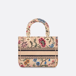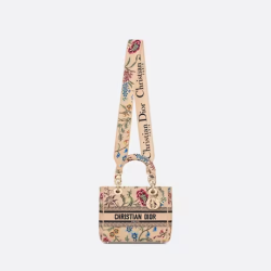 The Lady D-Lite bag combines classic elegance with House modernity. Crafted in natural raffia, the style is embroidered with the multicolor Dior Petites Fleurs motif, a romantic and vibrant homage to Mr. Dior’s passion for florals. D.I.O.R. charms in pale gold-finish metal enhance and highlight the silhouette. Featuring a wide, removable and reversible embroidered shoulder strap, the medium Lady D-Lite bag can be carried by hand or worn crossbody.