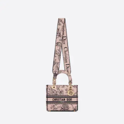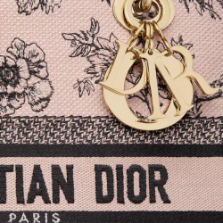 The Lady D-Lite bag combines classic elegance with House modernity. Fully embroidered with the powder pink Dior Jardin Botanique motif, it features a romantic floral pattern inspired by Granville gardens so dear to Mr. Dior. The front features a ‘CHRISTIAN DIOR PARIS’ signature while the ‘D.I.O.R.’ charms in pale gold-finish metal embellish and illuminate the silhouette. Equipped with a wide, reversible and removable embroidered shoulder strap, the medium Lady D-Lite bag can be carried by hand or worn crossbody.