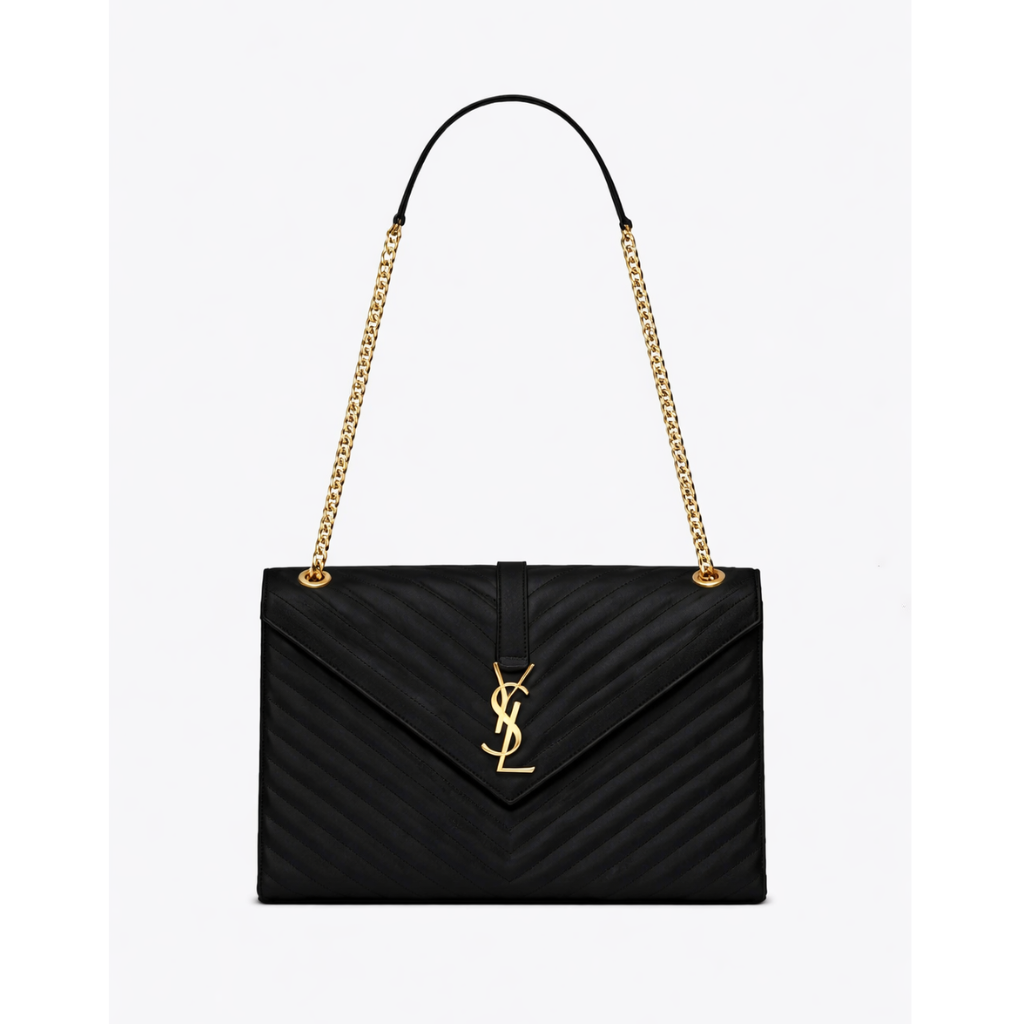 Tote Luxury DOUBLE GOURMETTE FLAP FRONT BAG IN TEXTURED LEATHER WITH GOLD-TONED Luxury SIGNATURE AND STITCHING.