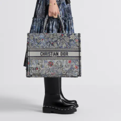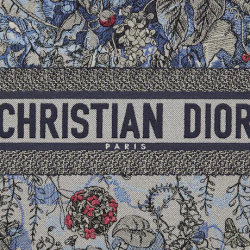 Introduced by Maria Grazia Chiuri, Dior’s Creative Director, the Dior Book Tote has become a staple of the Dior aesthetic. Designed to hold all the daily essentials, the style is fully embroidered with the denim multicolor Dior Jardin Magique motif, a bucolic and enchanting creation inspired by a magical world. The design is adorned with the ‘CHRISTIAN DIOR PARIS’ signature on the front and exemplifies the House’s signature savoir-faire. The large tote may be carried by hand or worn over the shoulder.