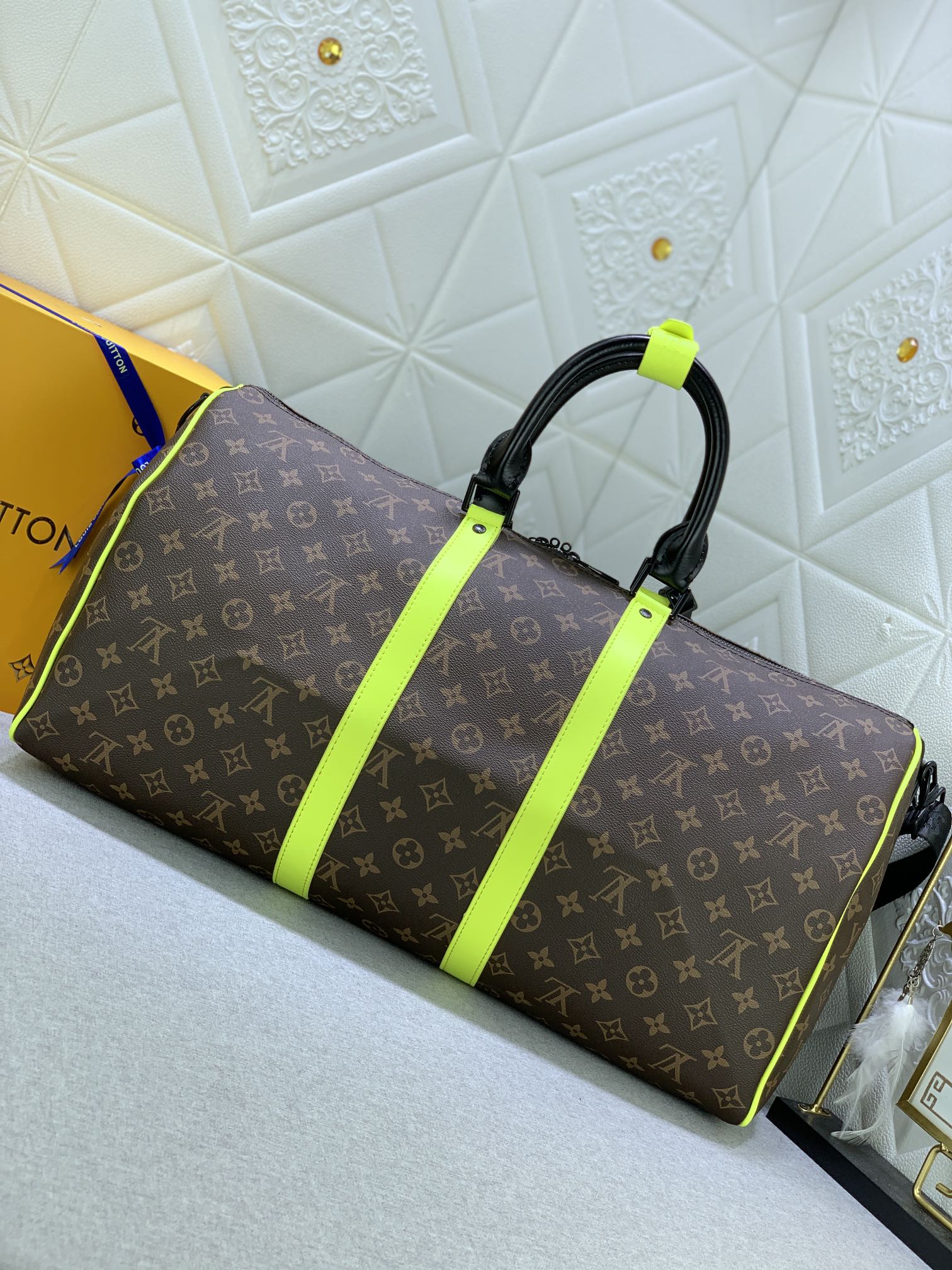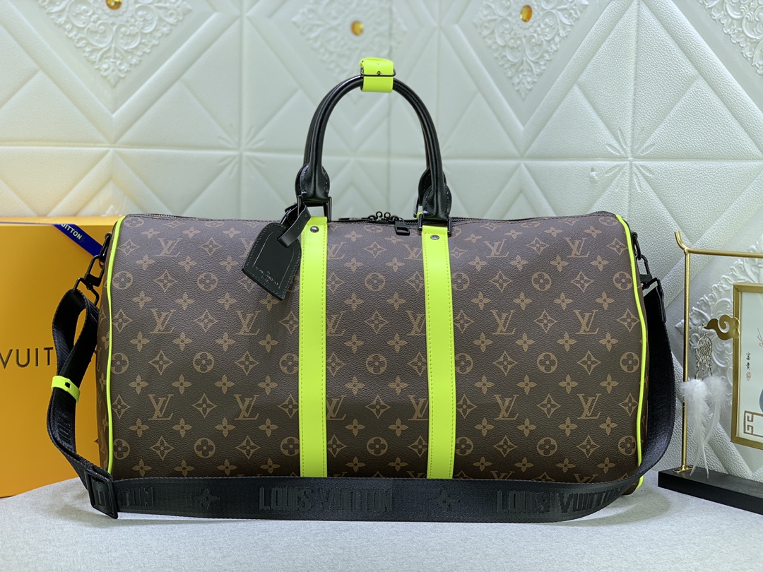Louis Vuitton Keepall Bandouliere 50 Brown And Chartreuse Macassar Canvas M45866