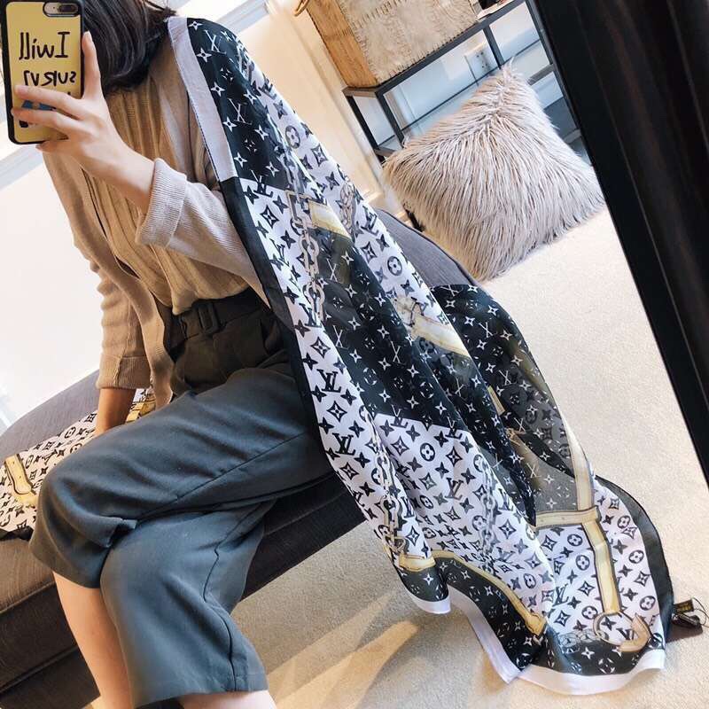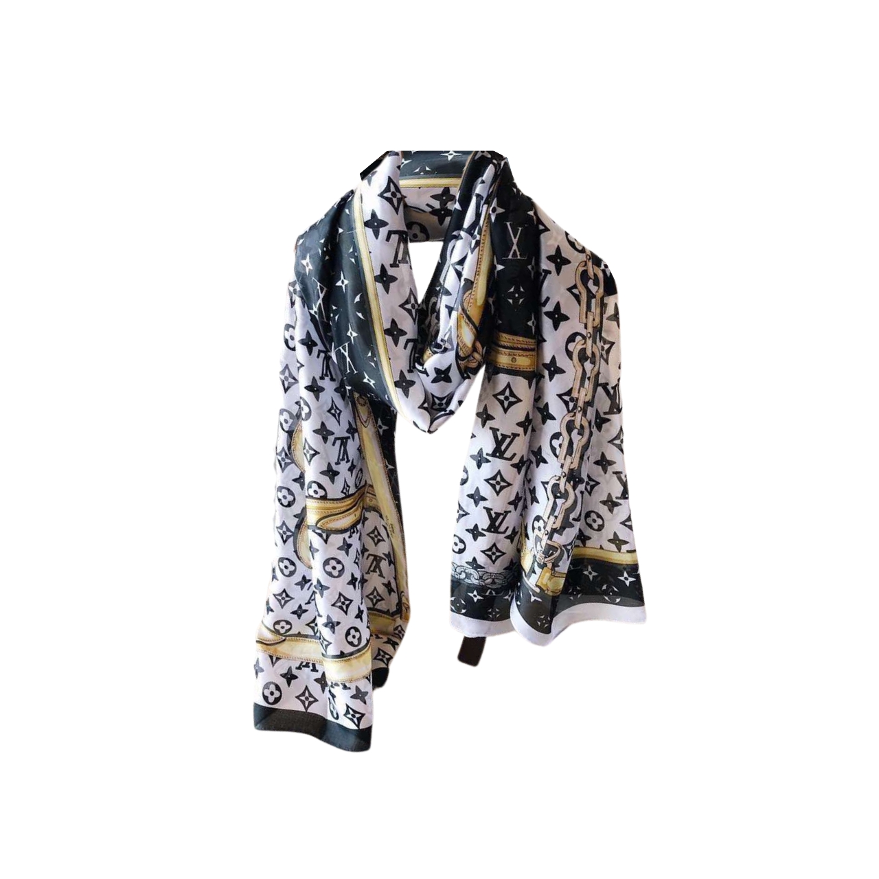Louis Vuitton Monogram Patterned Silk Scarf Yellow 180cm