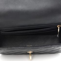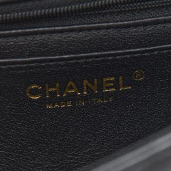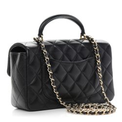 This is an authentic Luxury Mini Top Handle Flap in Black. This stunning small shoulder bag is finely crafted of diamond luxurious leather in black. The bag features a rolled leather top handle. a long aged link shoulder strap threaded with leather and a frontal flap with an aged Luxury turn lock. This opens to a leather interior with zipper and patch pockets.