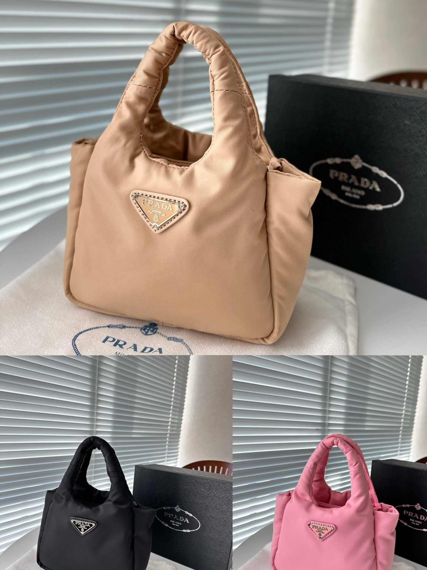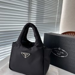 Prada Padded Soft Leather Bag Geranium Black 19cm