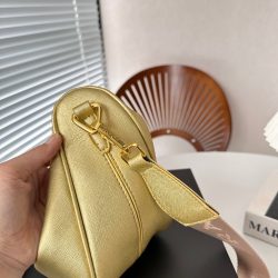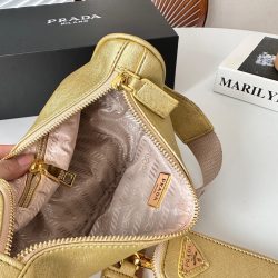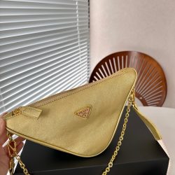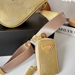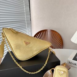 Prada Triangle Saffiano Leather Shoulder Bag Gold 28cm
