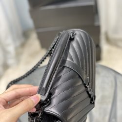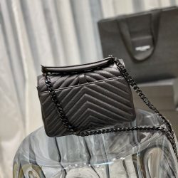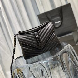Saint Laurent College Medium Chain Bag In Quilted Leather Black Noir 24Cm 600279Brm081000