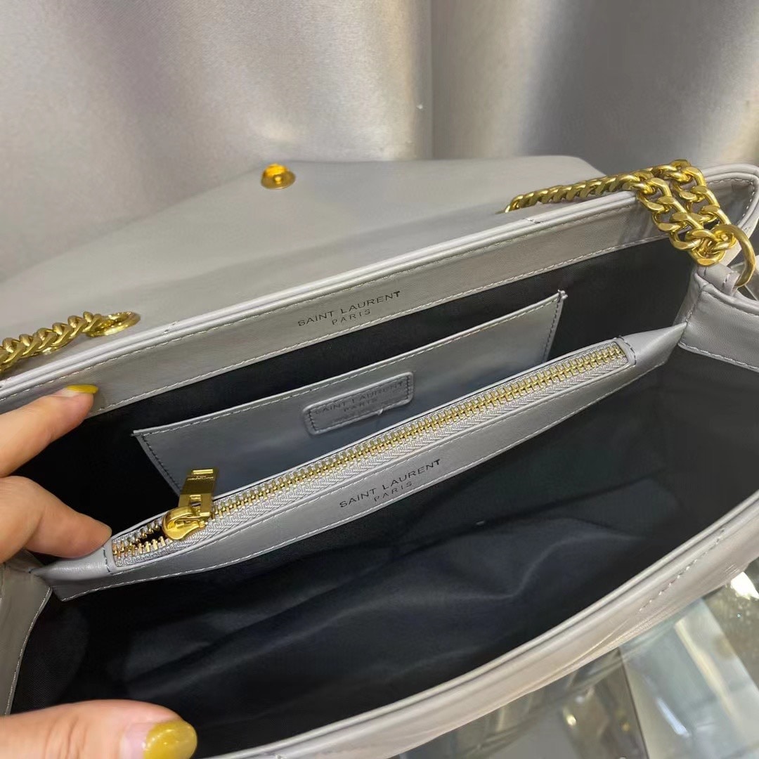 Saint Laurent Loulou Medium Chain Bag In Matelasse Y Leather Gray
