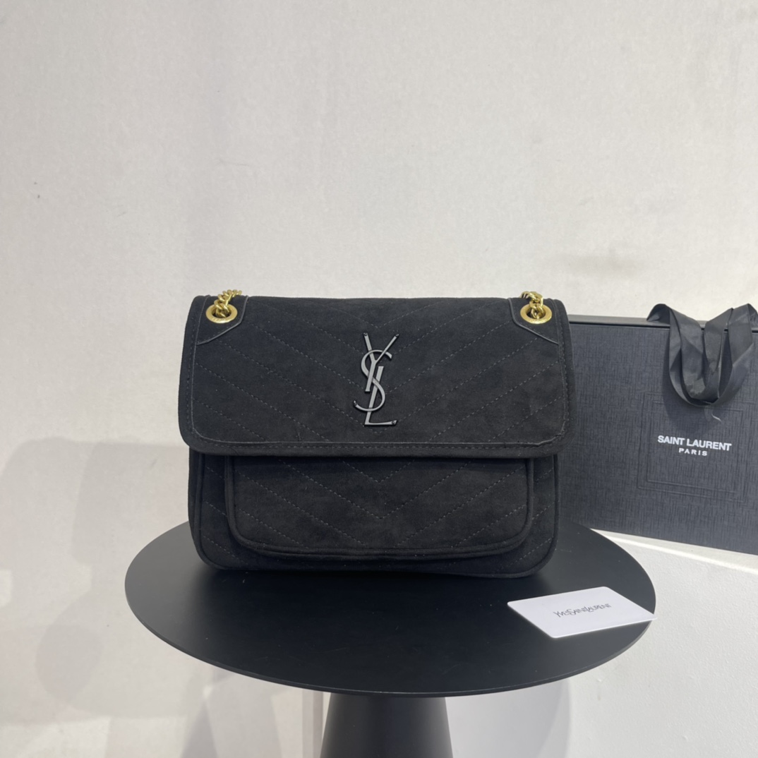 Saint Laurent Niki Baby Chain Bag In Suede Black