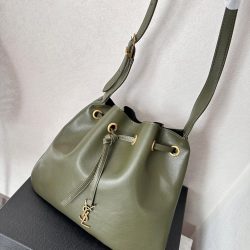 Saint Laurent Paris Vii Medium Flat Hobo Bag In Smooth Leather Army Green 28Cm