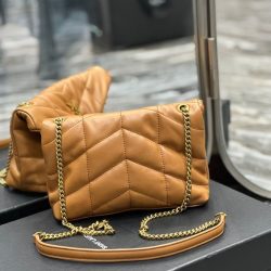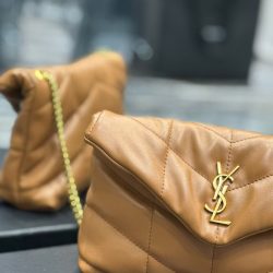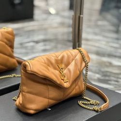 Saint Laurent Puffer Toy Bag In Quilted Lambskin Light Brown 26Cm