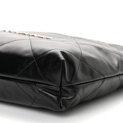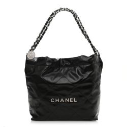 This is an authentic Luxury Small Luxury 22 in Black. This stylish handbag is crafted of diamond-stitched leather in black. The bag features leather threaded ruthenium shoulder straps and a matching Luxury logo on the front. The open top with magnetic closure leads to a black fabric interior with a pocket and a removable pouch.