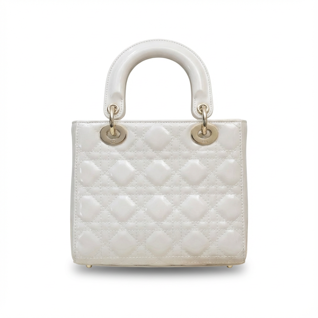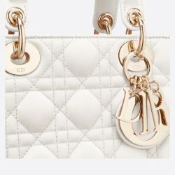 The Lady Dior My ABCDior bag epitomizes Dior’s vision of elegance and beauty. Sleek and refined, the timeless style is crafted in latte lambskin with Cannage stitching, creating the instantly recognizable quilted texture. Pale gold-finish metal ‘D.I.O.R.’ charms further embellish its silhouette with an elegant allure. Featuring a shoulder strap that can be personalized with badges, the small, unique design may be carried by hand or worn crossbody.