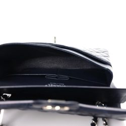This is an authentic Double Flap in Navy. This shoulder bag is crafted of luxurious blue leather with iconic diamond quilting. The bag features a rear patch pocket. a shoulder strap threaded with black leather and a turn-lock. This opens the front flap to reveal an inner flap and a black leather interior with patch pockets.