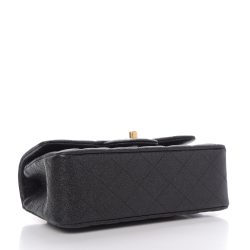 This is an authentic Mini Top Handle Rectangular Flap in Black. This chic mini crossbody is crafted of iridescent leather in black. The bag features a leather top handle. an aged gold chain link leather threaded shoulder strap and a facing aged gold turn lock. This opens the flap to a black leather interior with zipper and patch pockets.